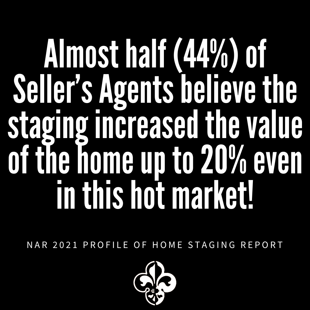 Even if your house sells quickly in a good market, it doesn’t mean it sold for the amount it would have sold for had it been professionally staged. Remember, HSR Certified professionally staged homes sell on a conservative average for10%+ more in a good market (see the Latest Home Staging Statistics).
